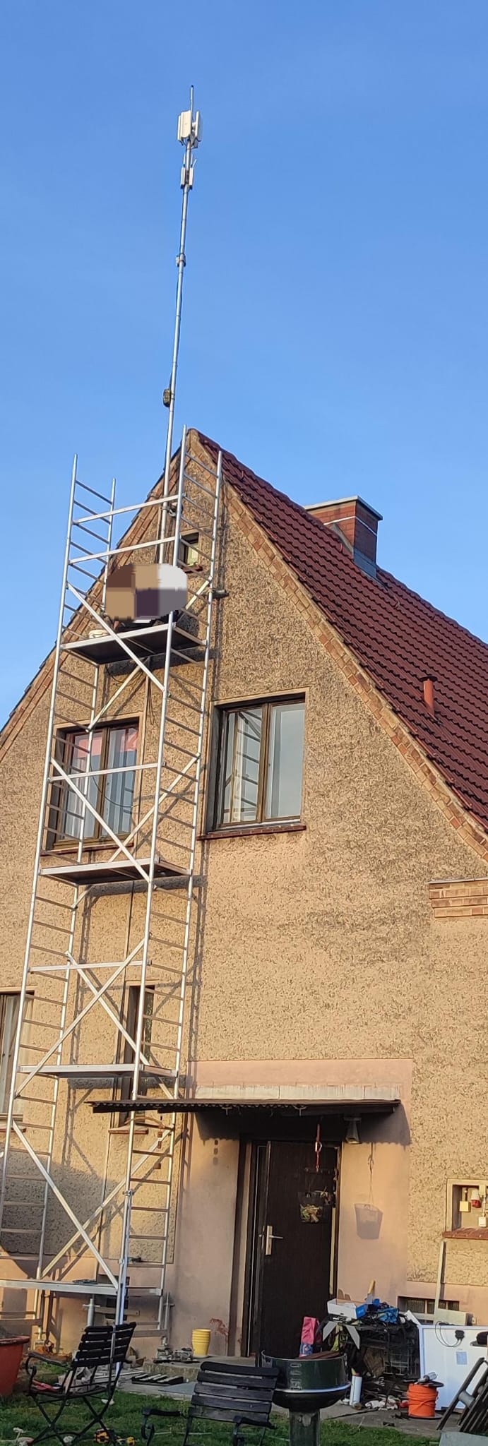 WLAN machst wird mit Hilfe eines Gerüstes montiert.